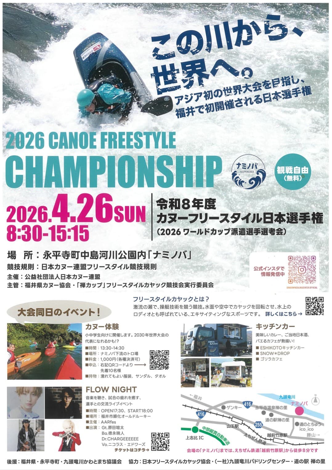 4月26日(日)に、永平寺町中島河川公園内「ナミノバ」にて開催される